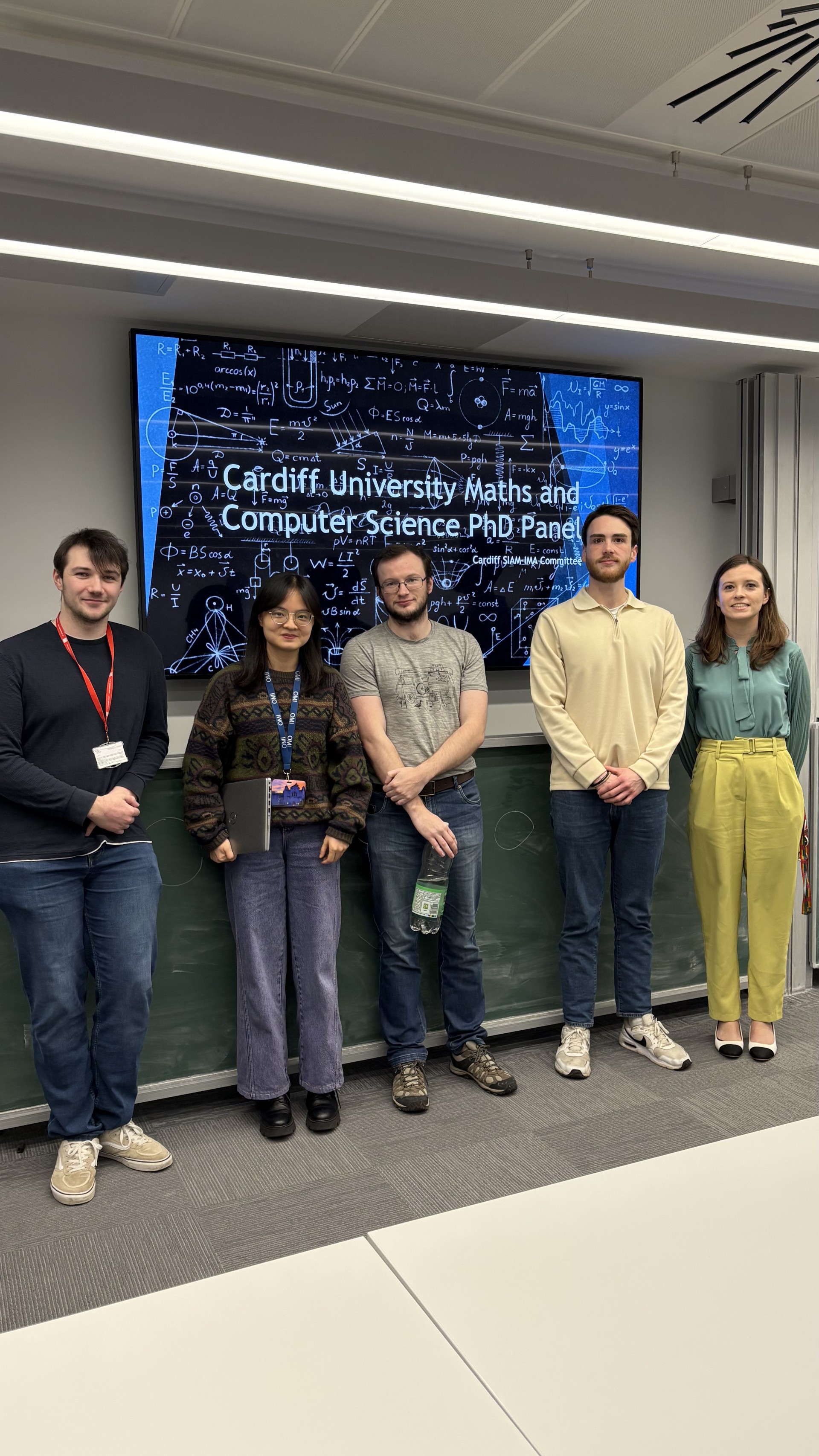The Cardiff University SIAM-IMA Student Chapter is formed by the Society for Industrial and Applied Mathematics (SIAM) and the Institute of Mathematics and its Applications (IMA) and includes students and faculty members from across Cardiff University who are interested in mathematics or scientific computing and their real-world applications.